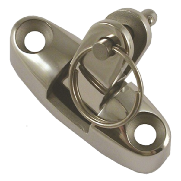 Solide beslag i rustfritt stål. Festet er designet for å kompensere for ulike vinkler på båtdekk. Denne beslaget er utstyrt med en stift.