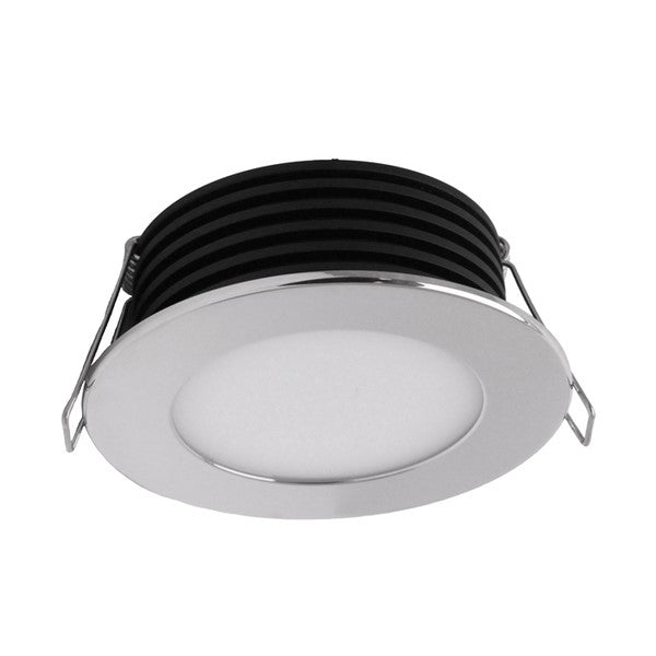 ED-inbyggnadsspot med frontram i spegelpolerat rostfritt stål.